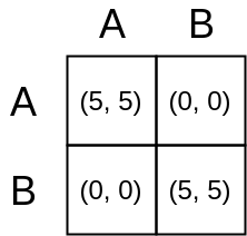 An abstract coordination game. You benefit heavily from making the same move as everyone else.