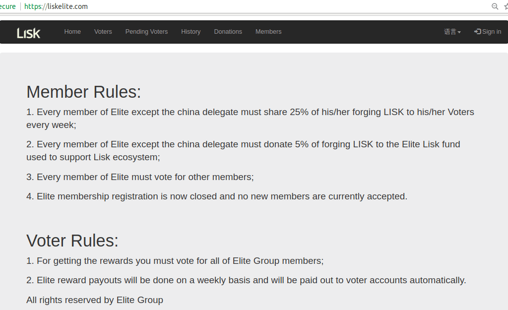 Second, and more damningly, in practice it seems like people, at least in their capacity as crypto token holders, are profit maximizers, and seem to see nothing evil or selfish about taking a bribe or two. As "Exhibit A", we can look at the situation with Lisk, where the delegate pool seems to have been successfully captured by two major "political parties" that explicitly bribe coin holders to vote for them, and also require each member in the pool to vote for all the others.