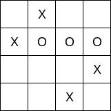 The goal here is to get 4 in a straight line, where the line can go in any direction, along an axis or diagonal, including between planes. For example in this configuration X wins: