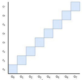 Though it's not really mathematically accurate to think of elliptic curve points as being like real numbers that have sizes, area is nevertheless a good intuition for thinking about linear combinations of elliptic curve points like we use in these commitments. The blue area here is the value of the Pedersen commitment \(C = \sum_i c_i G_i\) to the polynomial \(P = \sum_i c_i x^i\).