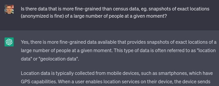 ChatGPT 3.5 worked impressively well this time; it certainly stumbled and fell much less than my previous misadventure, where I tried to get it to help me convert IPFS bafyhashes into hex. In general, ChatGPT seems uniquely good at teaching me about libraries and APIs I've never heard of before but that other people use all the time; this reduces the barrier to entry between amateurs and professionals which seems like a very positive thing.