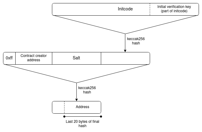 initcode, can only contain the wallet's initial verification key. The current verification key would be stored in the wallet's storage, but that storage record does not magically propagate to other L2s.If a user has many addresses on many L2s, including addresses that (because they are counterfactual) the L2 that they are on does not know about, then it seems like there is only one way to allow users to change their keys: asset / keystore separation architecture. Each user has (i) a "keystore contract" (on L1 or on one particular L2), which stores the verification key for all wallets along with the rules for changing the key, and (ii) "wallet contracts" on L1 and many L2s, which read cross-chain to get the verification key.