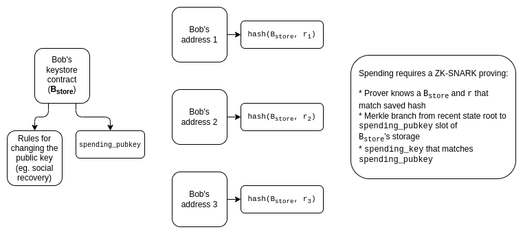 Ideally, we also want to preserve privacy. If you have many wallets that are managed by the same keystore, then we want to make sure: